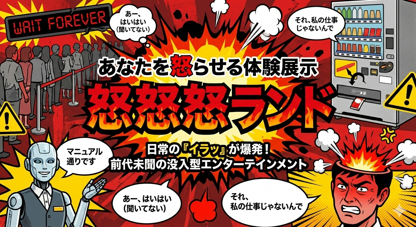 あなたを怒らせる体験展示 怒怒怒ランドは、日常生活の中で多くの人が一度は感じたことのある「イライラする場面」を、あえて体験できるようにした少し変わった展示です。特に、普段の生活でストレスを感じやすい人や、普通とは少し違った体験をしてみたい人におすすめのイベントです。普段は避けがちな「怒り」という気持ちを、安全な環境の中で体験できる点が、この展示の大きな特徴です。