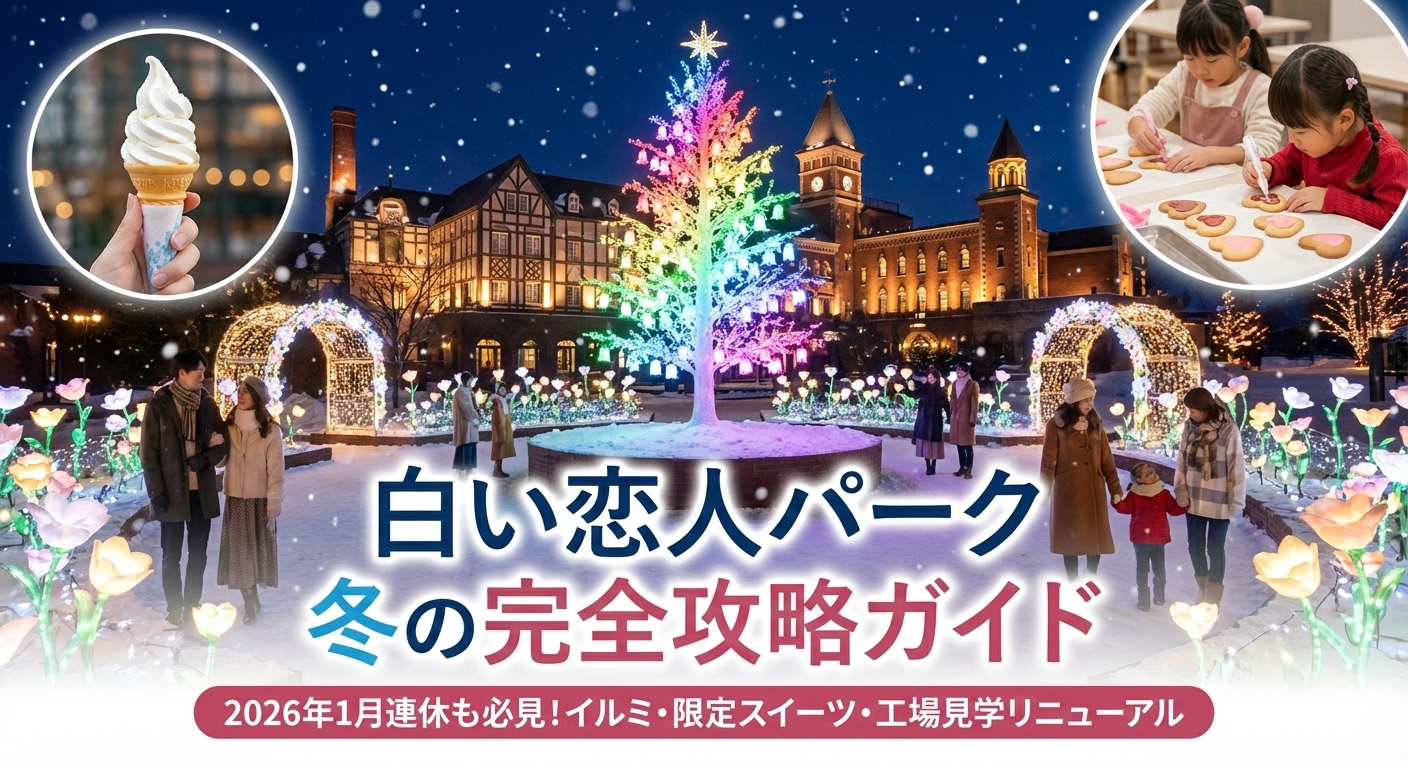 冬の白い恋人パークは、イルミネーションや工場見学、体験、食事など、さまざまな楽しみ方ができる観光スポットです。昼と夜で違った雰囲気を味わえるため、冬の北海道旅行をより思い出深いものにしてくれます。家族旅行やカップル、友だち同士で冬の観光を楽しみたい人は、白い恋人パークを旅行の予定に入れてみてはいかがでしょうか。冬ならではの景色と体験を一度に楽しめる点が、白い恋人パーク最大の魅力です。